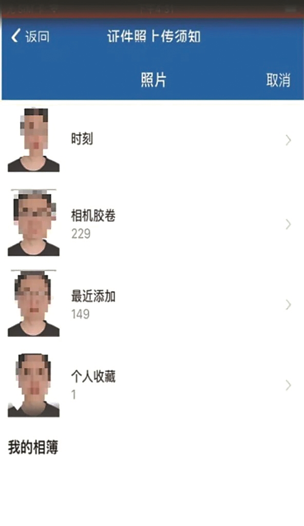 (三)使用相册的证件照片申领