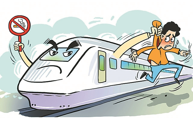 13日12时35分,郑州东开往齐齐哈尔南G1264次旅客列车天津西站停前,乘警袁存志、赵洋接随车机械师报警称:1车卫生间有旅客吸烟,导致列车降速。接报后,乘警立即赶到现场,发现旅客刘某正在1车卫生间内吸烟。