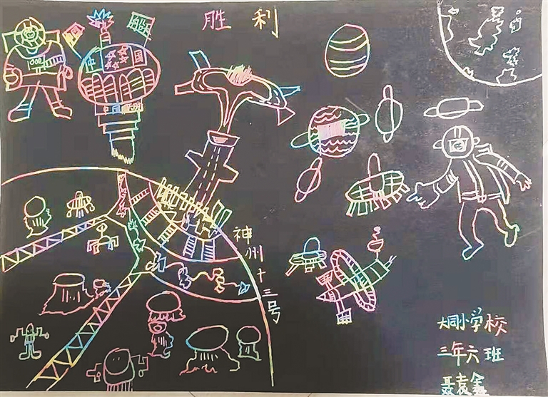 小记者哈尔滨市师范附属小学校 四年二十九班 张妙宸:神舟十三号的成功发射,彰显了祖国的强大和科技的发达,也激励着我们少先队员勤奋好学,奋发向上,长大以后向科学家们、航天员们学习,继续追逐着属于我们的航天梦!