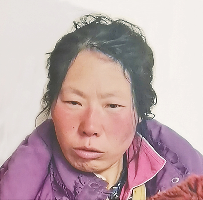 特征:身穿紫色棉衣,黑色裤子,棕色棉布鞋,戴红色线帽,说不清话,情绪波动较大,疑似精神异常