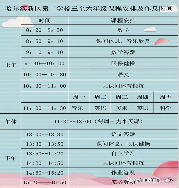 生活报记者在哈尔滨通达小学了解到,学校都会依托哈尔滨教育云平台的优质教育资源,组织孩子们观看网课,进行学习,并组织统一的答疑辅导,关注每个孩子的学习情况。“小学一、二年级线上学习不作统一硬性要求,小学三、四、五年级全员参与。上网课有困难的学生,可联系班主任老师反映情况,复课后老师会帮助辅导,保证学生跟上学习进度。”该校相关老师介绍说。
