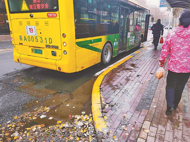 生活报讯 (帮办记者李威兵文/摄)3日,哈市市民通过本报帮办热线反映,近日,道外区南马路68号门前下水返水,导致门前公交站台出有很多积水,居民乘车、通行十分不便。