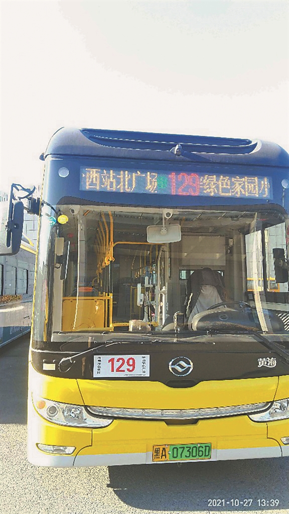 33路、129路、S12等公交车在这个首末站发车,所有的站牌上显示的始发站都是哈西站北广场。公交车风挡上方的电子滚动屏显示信息也是哈西站北广场。