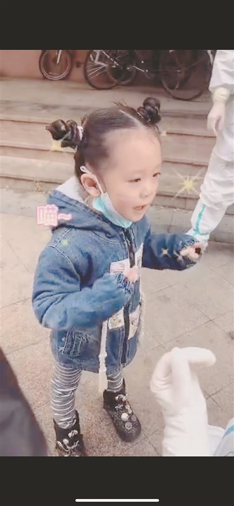王佳说,当时听到小女孩儿对自己的感谢,心里特别温暖。正因为有了百姓对医护人员们的支持与理解,让大家更加坚定了与病毒斗争的信念,小朋友的妈妈在一边用手机记录下了这温暖人心的一瞬间。
