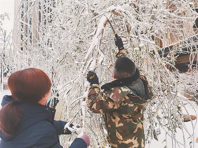 据介绍,从7日夜间开始,物业120余人全员上岗展开清冰雪工作,由专人驾驶滚刷式清雪车,结合人力铲雪进行作业。“机械设备影响业主们休息,但是没想到,广大业主十分理解支持,还为我们点赞。”费莉莎告诉生活报记者,由于每栋楼层数较高,物业人员白天利用望远镜等工具查看出现冰溜的位置,安排人员立即上楼进行清理;一部分工作人员外出采买电锯等设备,对小区内存在的断折树枝进行处理。“昨天早上7点左右,我们冒雪作业时,一位业主特意给我们买来热乎乎的粥,我们觉得再辛苦都值了。”费莉莎红着眼眶讲述。