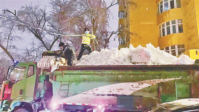 就在这时,一辆满载冰雪的大型运雪车让关云祥眼前一亮。关云祥几经周折把这台运雪车疏导到跟前,他爬上运雪车,脚踩在雪堆里,双手举起三根电缆线。借助着运雪车,电缆线被举得更高了,车辆通过的速度更快了。