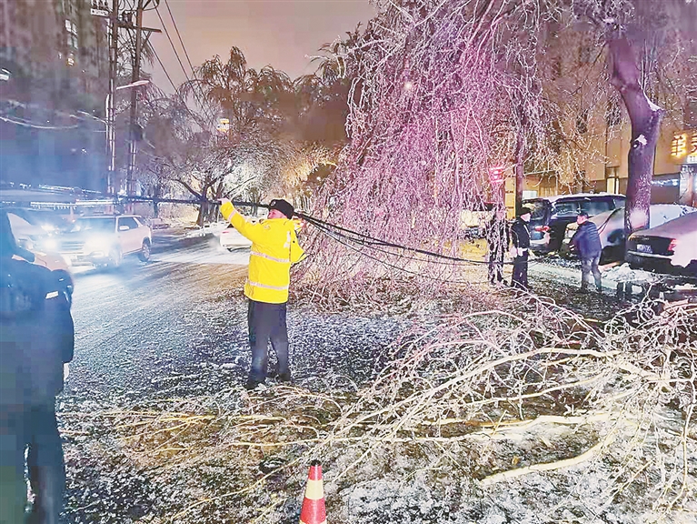 生活报讯 (高阳 记者何兴丽) 8日,一张交警在风雪中托举电缆的照片刷爆朋友圈,被网友喻为最帅“托举哥”……,原来,受持续性降雪、冻雨恶劣天气影响,哈市部分街路树木结冰折断并刮断电缆等设施,形成安全隐患,堵塞道路通行。其间,冰城交警们化身“电线杆”,托举几个小时。