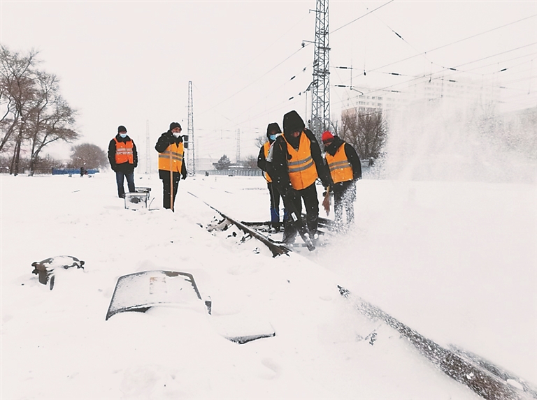 此外,齐齐哈尔地区铁路各部门(包括管内各车站、车务段、工务、电务、车辆、供电、机务)赶赴包保管区,开展除雪、除冰和组织保障工作。使用风力除雪机不间断地对道岔积雪进行清理,并及时开启自动融雪设备,确保接发列车组织平稳有序。