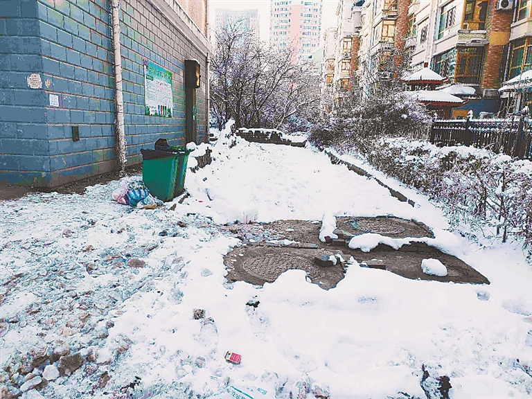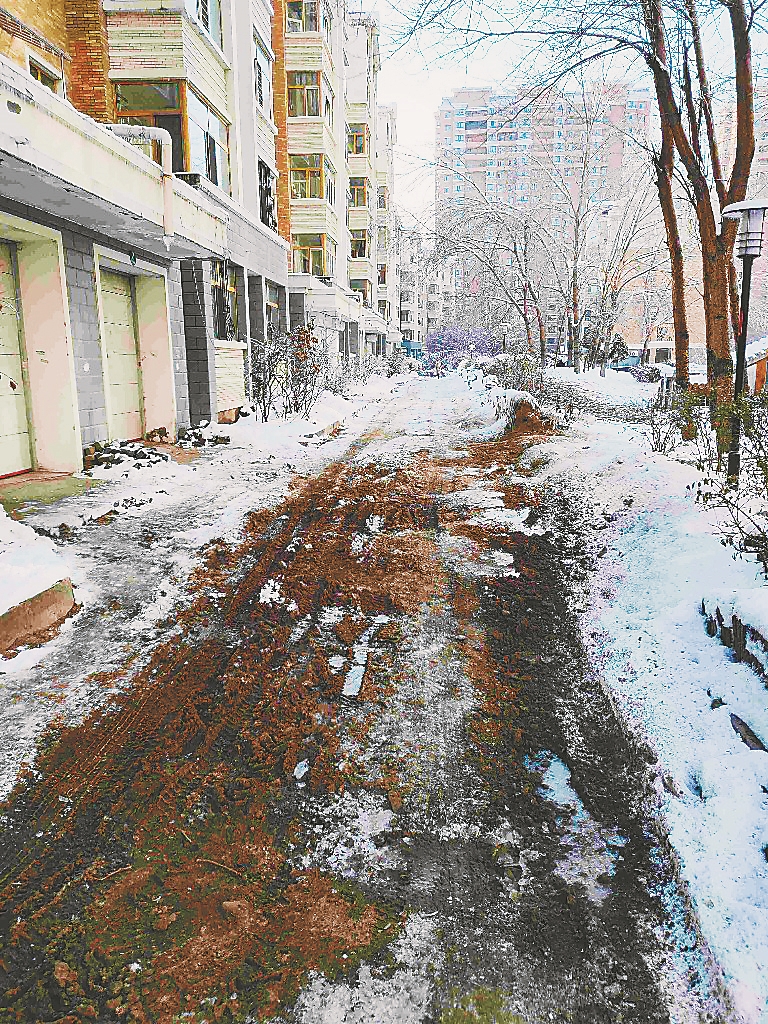 生活报讯 (帮办记者李威兵文/摄) 12日,家住哈尔滨市香坊区远大都市绿洲小区的刘女士通过本报帮办热线反映,因施工没有及时回填,现在小区院内很多道路都变成了“沼泽地”,满地的稀泥、水坑被雪盖住还结了冰,路边还有很多泥坑,不仅车经常陷进去,人不小心也经常陷进坑里。居民们希望有关部门尽快给解决此问题。
