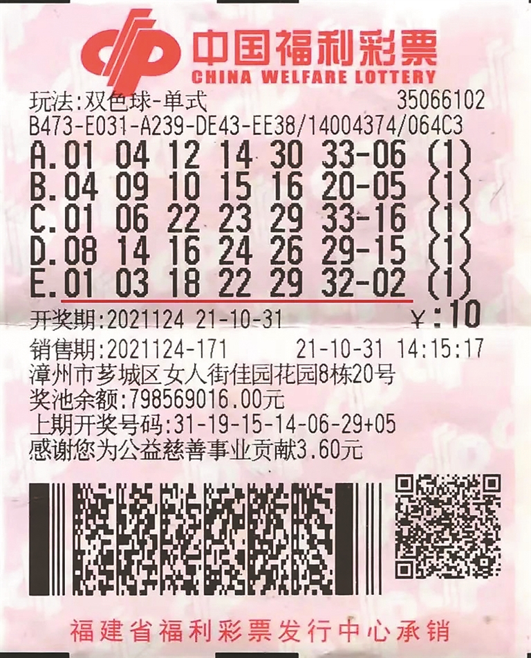 转自福彩双色球微信公众号 10月31日晚开奖的福彩双色球第2021124期,全国中出8注单注奖金为795万元的一等奖,其中一注花落福建漳州。几天后,大奖得主李先生(化姓)现身领奖。