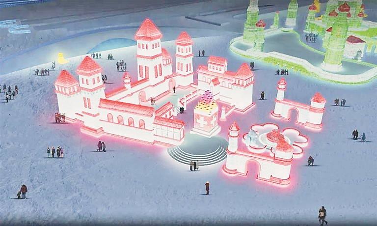 今年,哈尔滨冰雪大世界冰景建设面积为28.5万平方米,比上届增加了2万平方米;主塔高度也创历史之最,达到42米,相当于14层楼;景观数量也由上届的56个增加到65个。景区打造六大区,将以往冬奥会举办国的经典建筑在园区内深度还原,并借冰建的声光动感展示冬奥魅力,艺术观赏性和视觉震撼性更强。图片由景区提供