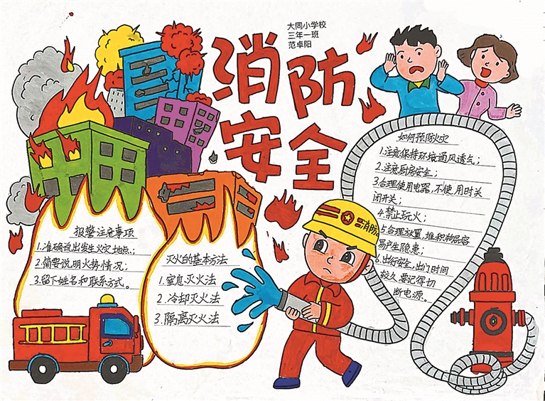 小记者 哈尔滨市大同小学校 三年一班 范卓阳:消防安全和我们的生活息息相关。“消防”,是以“防”为主,而“消”是补救措施。所以我们一定要做好防范工作,使我们的生活更美好!