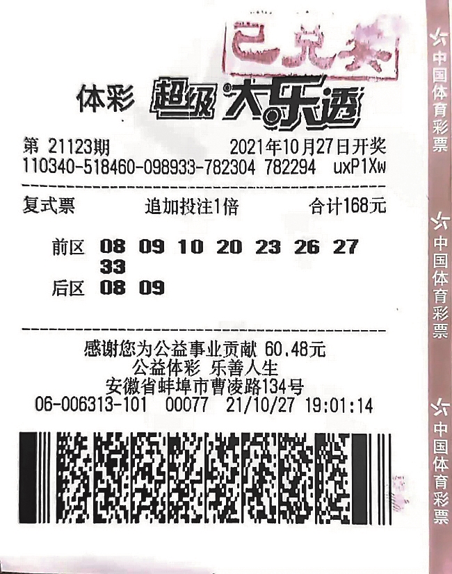 生活报讯 (许褚) 近日,安徽彩民刘先生,凭借一张168元投注的复式追加票,收获大乐透1805大奖。刘先生表示,自己选号没有技巧,一直守号投注,能不能中奖全靠缘分。