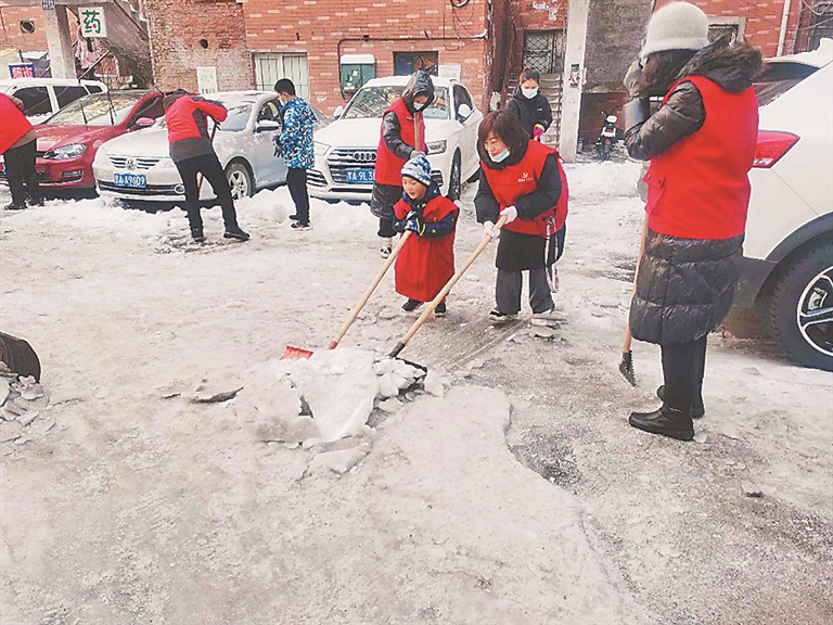 生活报讯 (记者肖劲彪) 近日,哈市南岗区通达街道松明社区绿馨园小区发出倡议,号召居民积极参加清冰雪义务劳动,最终经过30多名志愿者的努力,小区庭院内的积雪很快被清理干净,为居民出行提供了安全保障。