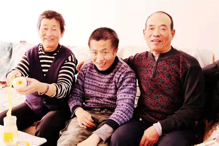 冬天的地面比较滑,高来荣就细心地在儿子的拐杖支撑面上加上布,增大摩擦力,减少出现打滑的情况。高会艳平时走路都是用脚尖往前蹭,脚后跟不着地,所以穿鞋的时候脚尖磨损就很大,高来荣就定期用自行车轮子的皮给儿子补鞋。在高来荣和妻子的细心照顾下,被诊断活不过12岁的高会艳今年已经41岁了。“他现在可以慢慢地拄着拐走了,能自己换衣服,这就很好了。”高来荣满足地说着,“我觉得现在这样就挺好的,我俩想把全部的爱都给会艳,希望他能好好地生活下去,就是对我俩最好的安慰了。”高来荣永远也忘不了,做完手术后的高会艳,给了他这一生永远也忘不了的拥抱,那天他们父子俩抱在一起很久很久……