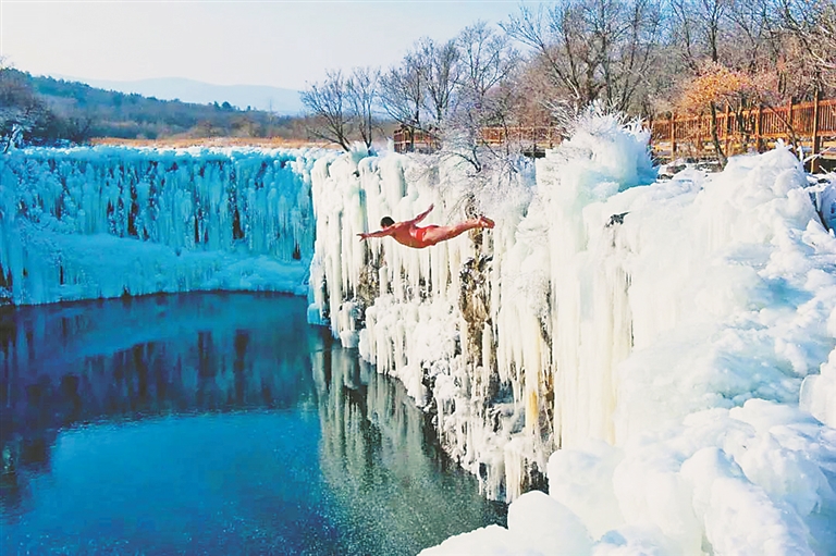 赏冰瀑跳水