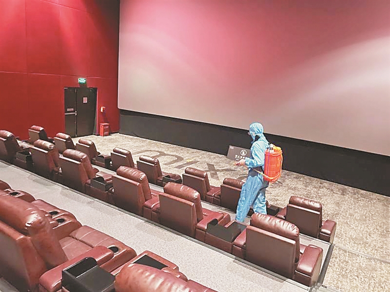 对于卫生安全状况,影院更是严格要求。据悉,复业后所有影院将对大堂、影厅、卫生间、走廊、疏散通道等公共区域喷雾消毒;对座椅、入口闸机等重点区域擦拭消毒;对影厅座椅扶手、3D眼镜等观众直接接触物品,每场消毒一次,并且会在影院入口配备消毒剂,引导顾客做好手部消毒。