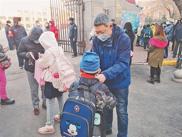 生活报18日讯 (实习生郭佳鑫 见习记者崔凯歌 记者吕晓艳) 18日,哈尔滨市有序恢复线下授课。当天7时30分,生活报记者来到哈尔滨市第六十九中学哈西分校和哈尔滨市经纬小学校门口,体验一下冰城中小学的复课第一天。