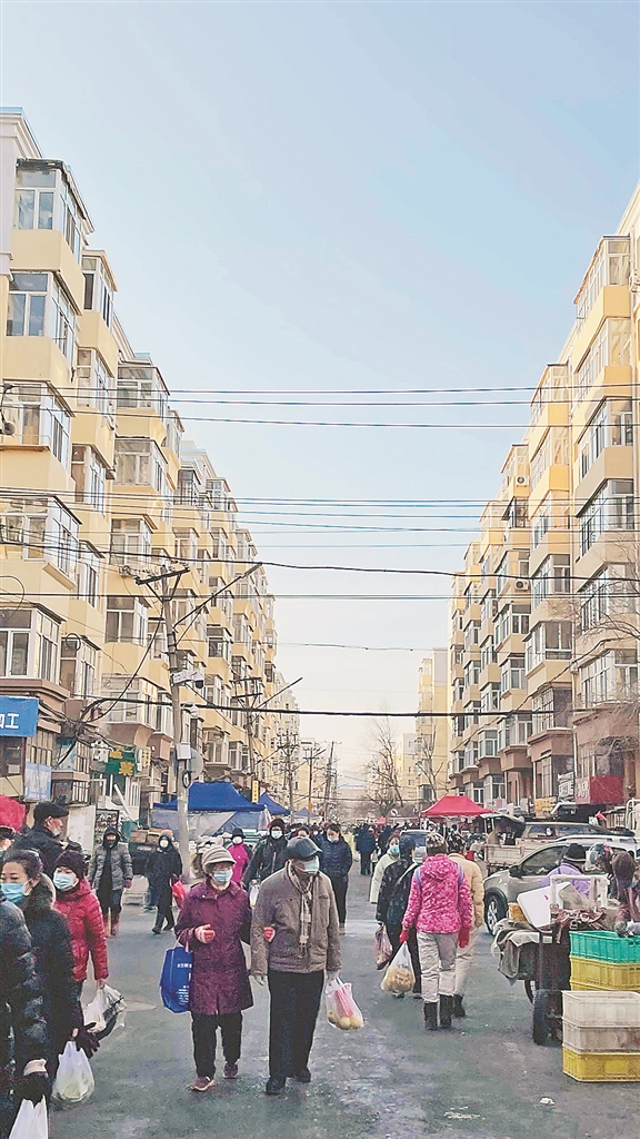 南岗、道外等地早市的烟火气也很旺。据一位市场摊区工作人员介绍,虽然恢复了正常经营秩序,但也不能大意,“市场给业户都画了摊位线,两个业户中间必须留出空位,市民购物要随买随走,不让聚集。大家一起努力,保持胜利成果。”
