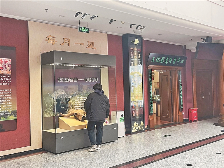 在黑龙江省博物馆内,不少观众都对一楼阳光大厅的“东北野牛头”特展,和二楼精品展厅的“老招幌”展十分感兴趣。据悉,这都是前不久刚刚“上新”的内容。