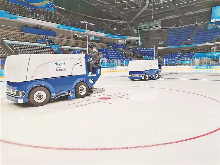 虽然本次测试赛前,国家体育馆比赛场地的冰面厚度早就达到了赛时要求的3.5厘米。但开赛前的一周,齐齐哈尔制冰师们没有一刻可以放松,测冰面厚度和冰温等细节工作仍是他们每天的必修课。制冰师李岩说:“冰球比赛对冰场要求很高,球场上的标识线宽度也要精确到毫米。为更好地完成冬奥会制冰任务,制冰师不断学习使用新型制冰设备,不能用设备完成的部分,都用手和小工具一点一点雕琢。”