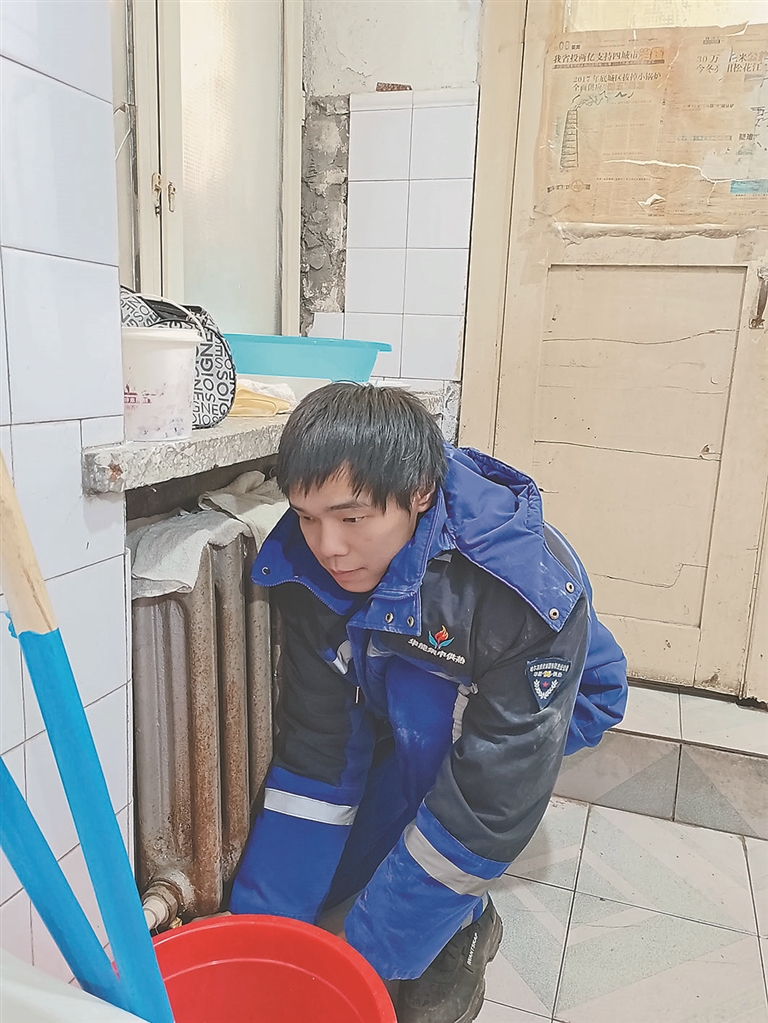 据了解,这件事发生在10月27日上午,赵恒利和同事在友谊路152-2号任女士家更换供热管线,该栋楼未分户且管线老旧,因为管道堵塞致使泄水后仍有积水不断流出。水排不净就无法进行热熔操作,等它自己流干又太费时间,管子整根都埋在墙里从外面无从下手,考虑再三赵恒利决定尝试用引流的方法疏通管道。他向用户要来了一根吸管插进了管口,将脏水吸到嘴里再吐出来,暖气中常年淤积的泥水到底有多脏没有人比他更了解,可他还是用这种“笨方法”硬是把管道中的堵塞给疏通开了。这一举动被同事拍摄下来,一旁的用户看了既吃惊又感动,不停地向赵恒利重复着感谢的话。排完水后赵恒利等人立即将管线熔好安装上新暖气,再打开阀门对用户家管道进行整体冲洗,仅用两个小时就完成了维修更换工作。赵恒利只是用自来水漱了漱口,看到用户家恢复供热便急着赶去维修下一户了。