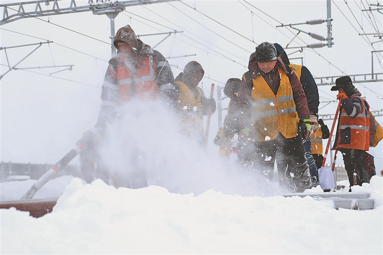 生活报讯(周晓舟 记者栾德谦)22日,生活报记者获悉,中国铁路哈尔滨局集团有限公司15000余名干部职工连续奋战超过24小时,调集上千台除雪机具,对线路、道岔等重点部位进行清雪作业。