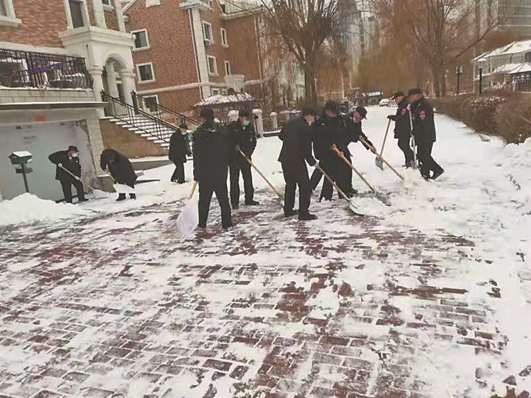 生活报讯(见习记者王伟健 记者黄迎峰文/摄) 本次降雪,哈市各行各业提前部署、有效防范,全力保障市民出行顺畅。22日,生活报记者分别走访了松北区世茂澳洲风情园和世茂翡冷翠小区,物业人员已从21日22时许持续奋战了12个小时。