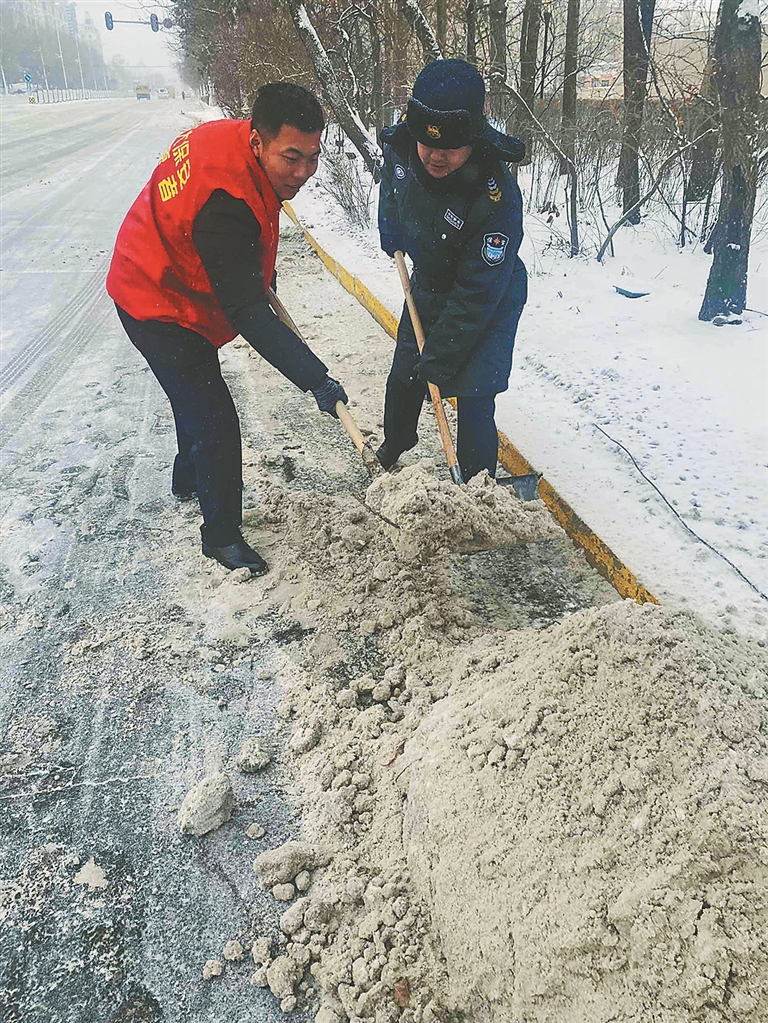 生活报讯 (见习记者刘维娜 记者李丹文/摄) 21日夜间,哈市迎来入冬后的第二场大雪。22日,全市近万名临街商家业户、党员干部、志愿者参与清冰雪。同时,全市各区、各部门迅速组织动员街道社区干部、临街单位和商家业户等各方力量参与清冰雪。