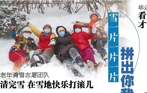 “今天早上老年志愿者协会松花江分会说的是7点清雪,我们自发早上不到6点30就开始清理了。”张淑英十分自豪,“而且我们8点来钟清理好了以后,还在雪堆中打滚儿呢。”张淑英和其他的志愿者躺在雪中,拍着照片,互相扬雪嬉闹,笑得十分开心。