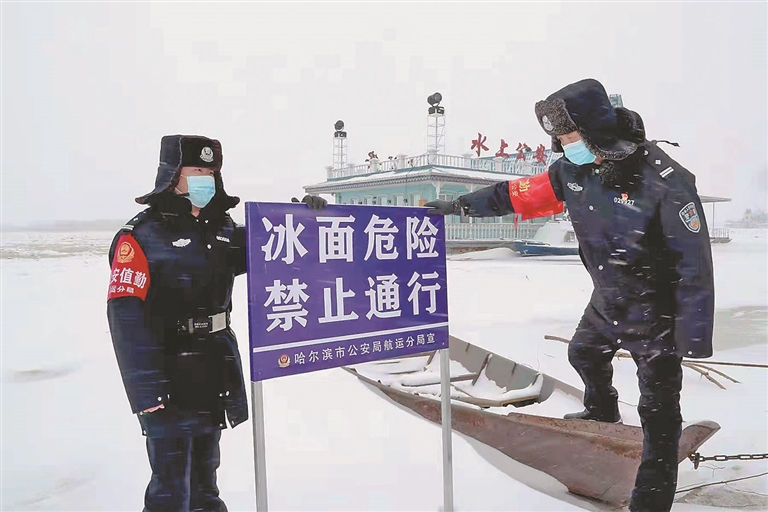 记者从哈尔滨市公安局获悉,即日起,禁止一切行人、车辆在松花江和其他水面通行。同时,哈尔滨市公安局在沿江区域设立了警示标志,并在沿江一线持续开展巡逻。