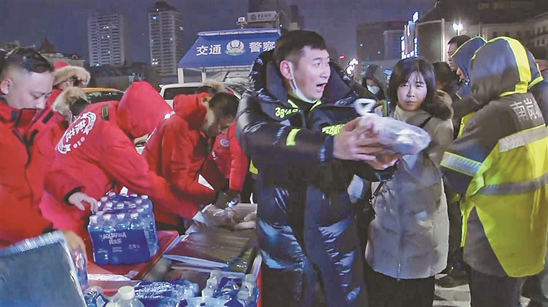 “刚打包好的,大家快来吃口热乎饭。”11月22日23时,环卫工人已连续作战一天一夜,爱心企业一行30余人,驾驶10台车,来到博物馆转盘道为在寒冬中坚守一线的南岗区城管局清扫保洁大队驾驶员和环卫工人送去了200份热气腾腾的特色夜宵。