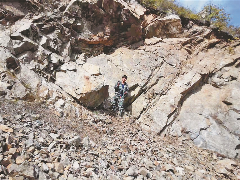 地质勘探员上山前要带着“地质三件套”——地质锤、罗盘和放大镜,还有刀具和GPS,为了保证电量充足,往往会随身多备一些电池。有的作业点离驻地太远,为了节省时间,他们通常会在山里搭帐篷过夜。“20年前,我刚工作的时候,上山午餐就是馒头、咸菜疙瘩,再背个军用水壶,这些年条件越来越好,有馒头、火腿肠、牛奶、袋装咸菜。”赵法君介绍。