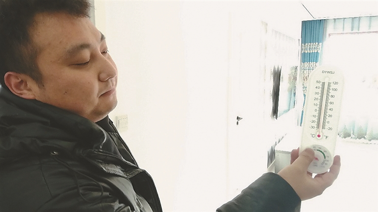 13栋刘女士家是同样的情况,刘女士说:“暖气都是拔拔凉的,还用测温?”刘女士手里拿了一个温度计,显示为10℃,在衣服架上挂了不到两分钟就变成了6℃,温度还在往下掉。