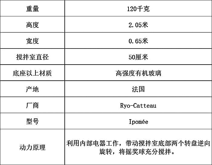 “七乐彩”摇奖机是搅拌式摇奖机,高2.05米,宽0.65米,搅拌室直径是50厘米,底座以上材质为高强度有机玻璃。