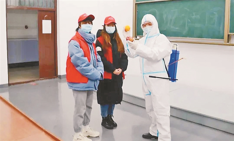 黑龙江工商学院后勤处有个老员工叫林秀武,通暖气、修电灯、整桌椅,样样精通,被师生形容为无所不能的“哆啦A梦”。这段时间,从讲台到课桌,从教室到走廊,林师傅背着几十斤的消毒液,隔着厚厚的防护服,重复着按压消毒液喷杆的动作,多达上万次,“忙忙碌碌, 一天很快就过去了。”