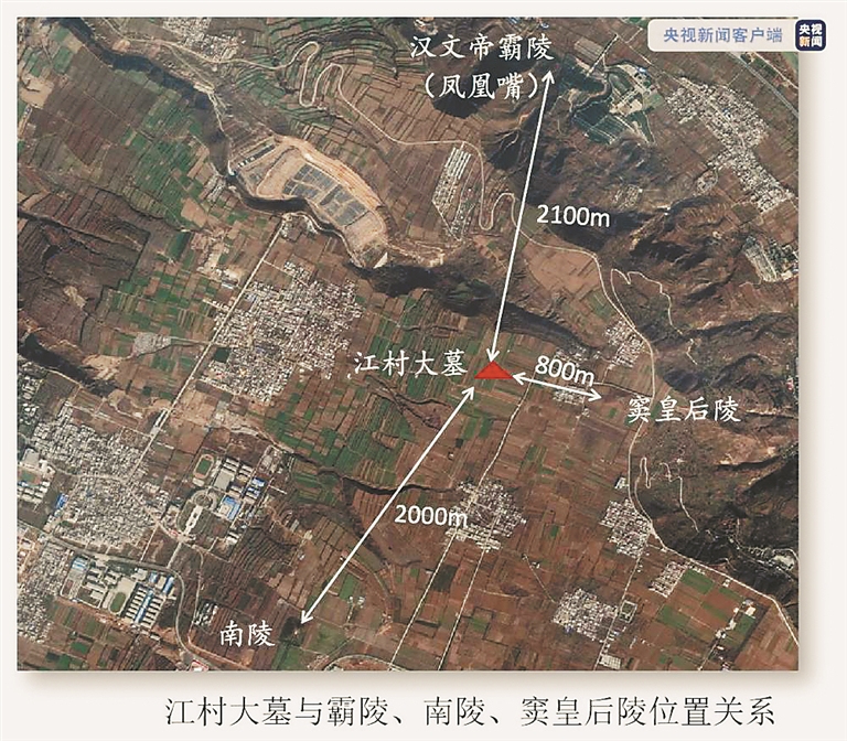 江村大墓位于陕西省西安市灞桥区。2016年江村大墓外藏坑受到盗扰,为确认墓葬保存状态及周边文物分布情况,经国家文物局批准,考古工作者对江村大墓及其附近的窦皇后陵、薄太后南陵和相传为汉文帝霸陵的“凤凰嘴”地点进行了系统的考古调查、勘探,并对陵园外藏坑进行了考古发掘,目前基本确认江村大墓为西汉早期汉文帝刘恒的霸陵。