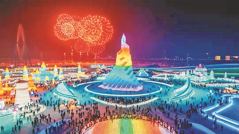哈尔滨松花江冰雪嘉年华 赏冰乐雪点燃冬奥热情