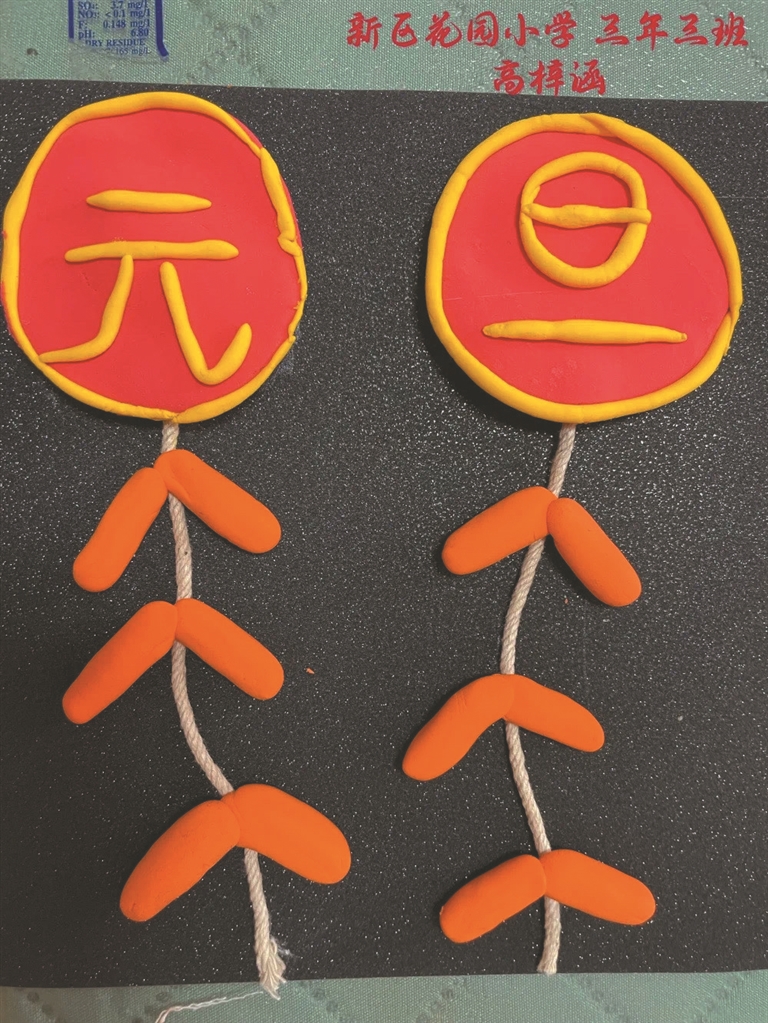 元旦,即公历的1月1日,是世界多数国家通称的“新年”。元,谓“始”,凡数之始称为“元”;旦,谓“日”;“元旦”即“初始之日”的意思。国外,大家庆祝元旦的方式各不相同。例如英国在元旦前一天,家家户户都必须做到瓶中有酒,橱中有肉。英国人认为,如果没有余下的酒肉,来年便会贫穷;在比利时,元旦的早上农村中的第一件事便是向畜拜年。课堂最后,同学们还在老师的带领下运用手工材料制作了一幅爆竹手工画,以此庆祝元旦佳节。