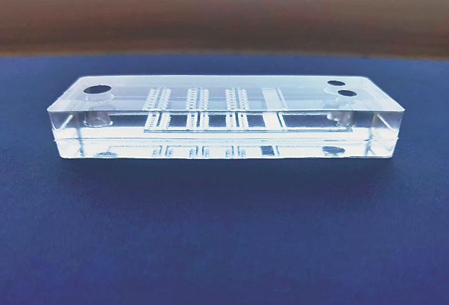 一个透明的小盒子,如何灵敏地捕捉到人体内早期癌症的“信号”?作为使用者,又应该怎样在家里用这个小盒子进行自我筛查?“贴‘芯’人项目团队的负责人,来自哈尔滨医科大学肿瘤学的硕士二年级研究生刘家霖给生活报记者介绍了这个设备的奥秘,“使用者将设备贴在皮肤表层,通过微针提取皮肤上的组织液,通过‘微流控芯片’的检测,等待一个小时左右出现结果,如果呈现阳性,芯片上会发出荧光信号的预警,说明使用者有患极早期癌症的可能性,需要去医院进行精密检查。”