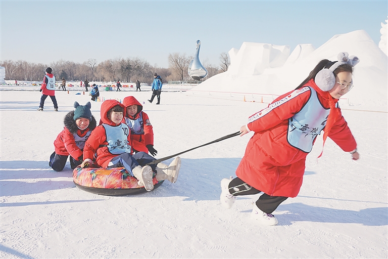 生活报讯 (记者李丹文/摄) 近日,黑龙江省“迎冬奥,龙江少年上冰雪”共青团关爱留守儿童“情暖童心·乡伴童行”公益项目暨赏冰乐雪系列活动启动仪式在太阳岛风景区-太阳岛雪博会正式拉开了帷幕。哈市前进小学师生代表共70余人参与本次启动仪式。