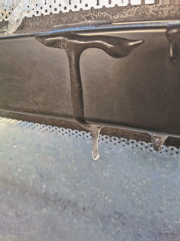 记者此后又乘坐了6线、10线、17线、1线等不同线路的公交车,多数公交车都没开暖风。下午记者乘坐6线公交车,温度计显示车厢内气温为2℃。记者注意到,该车车窗的边框上结着厚厚的冰,而且窗框上滴下的水竟然形成了悬空的冰溜。