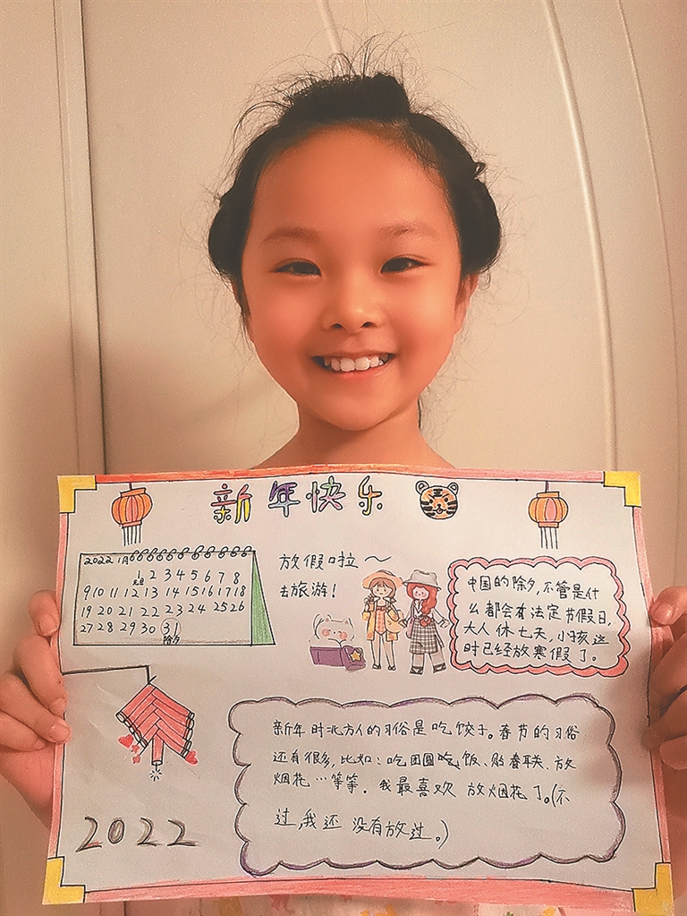 小记者 哈尔滨新区第一小学校 四年一班 刘芊惠:希望我在新的一年可以更加努力学习,得100分,能长高到140cm,冲呀!