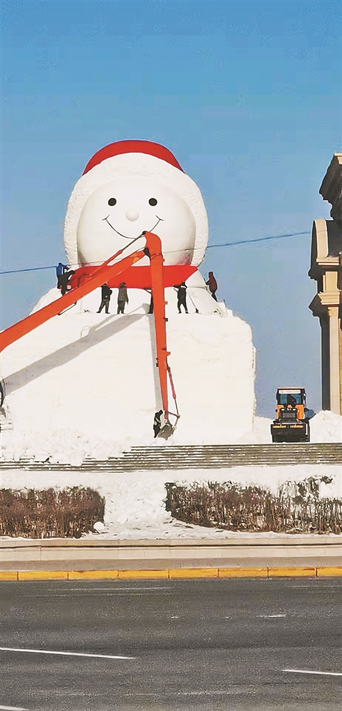 张凯说,这座大雪人寓意着可爱祥和、喜庆丰收,其憨态可掬、亲切可爱的模样,使之成为松花江畔的一处“新地标”,吸引了众多市民游客前来观赏。“目前每天约有3000人来和大雪人拍照。”大雪人也不负众望,很多短视频平台的点击量非常高,“哈尔滨大雪人”瞬间火遍全国,很多外地媒体和央视纷纷打电话关注。