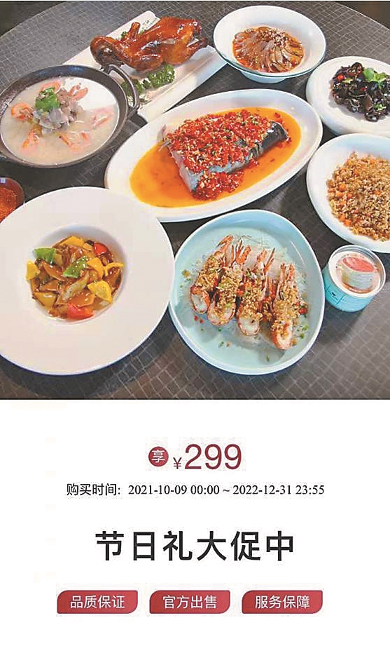 随后,记者来到道里区某星级酒店,据工作人员介绍,6人以下的套餐3888元,6至10人的套餐5888元,10人以上的套餐有8888元和12888元两种。“除夕当天上午11点至晚上10点都有厨师在,如果不想吃套餐也可以单点,但有低消。”