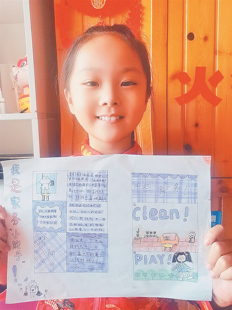 哈尔滨新区第一小学校 四年一班 刘芊惠:我们马上就要放寒假了,在假期里除了完成老师留的作业还要帮妈妈完成一些力所能及的家务。