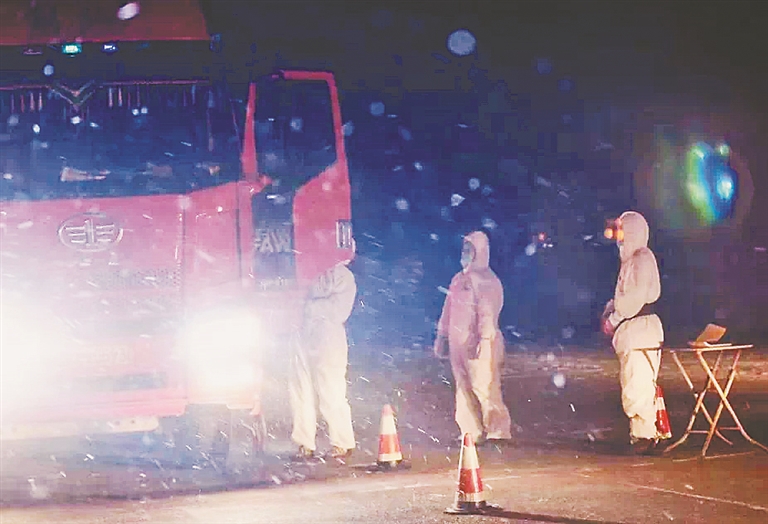 公路卡口是疫情防控的重点区域和关键点位,全区各级各类医疗机构积极响应号召,医护人员不分昼夜、寒暑,24小时值守。最冷的时候两小时倒一班,每天40余人坚守卡口。