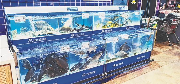 17日,记者来到了道里区一家超市内,水产区既有鲜活的淡水鱼,也有冰鲜冷冻的深海鱼。水产区负责人向记者介绍,鲤鱼、草鱼、三道鳞是淡水鱼当中卖得最好的,肉质细腻、营养价值高、单价较高的鳜鱼也受到了不少顾客的青睐。