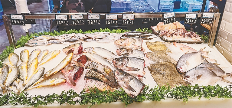 这位负责人向记者介绍,现在鱼类周转得快,一缸鱼两三天就卖完了。冰鲜产品中黄花鱼和刀鱼卖得最好。而且该超市的黄花鱼是福建产地直采的,保证新鲜。此外,超市为了保鲜及品质,冰鲜鱼上架2天后一般就会打折处理,如果当日仍未售完就扔掉。