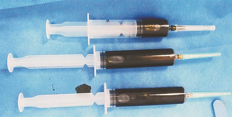 经与家属沟通,医生张立维决定在床旁为大娘做胆囊穿刺引流。因李大娘太过瘦弱,胆囊明显增大后脱离了原有的胆囊床位置,仅有胆囊颈部一部分具有穿刺路径。在选择好穿刺路径后,将穿刺针经皮经肝穿刺进入胆囊颈部腔内,然后通过置入导丝和导管,顺利将引流导管置入胆囊腔内。置入引流管后,经引流管抽出150mL深褐色浓稠液体,胆囊体积明显缩小,李大娘症状明显缓解。目前,患者已带管安全出院。